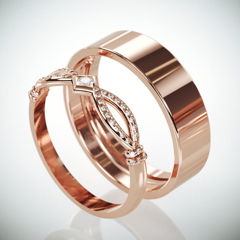 14k Rose Gold Royal Eternity Wedding Rings Set With Diamonds Handmade 14k Gold Royal Eternity Wedding Bands Set With 45 Diamonds