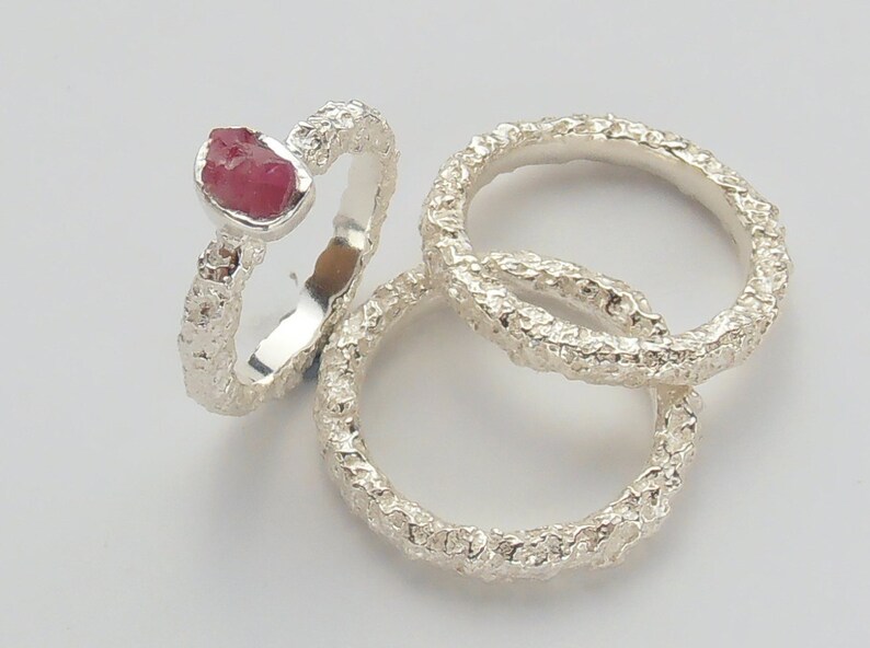 Raw Ruby Wedding Ring Set Rough Ruby Engagement Wedding Ring Set