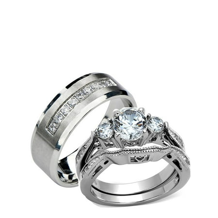 Stainless Steel Wedding Ring Sets Walmart