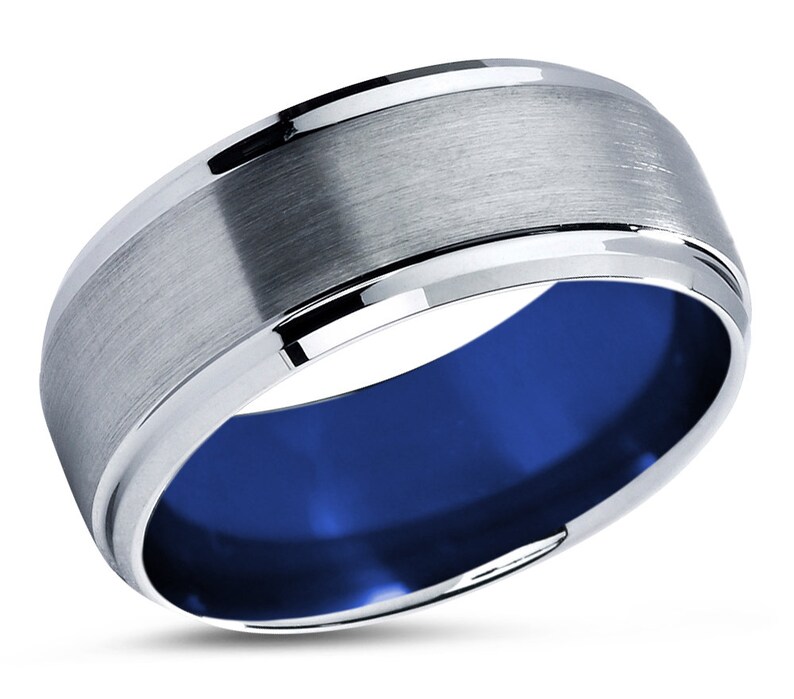 Mens Wedding Band Blue Tungsten Ring Silver Engagement Ring Promise Ring Wedding Ring Rings For Men Rings For Women Silver Ring