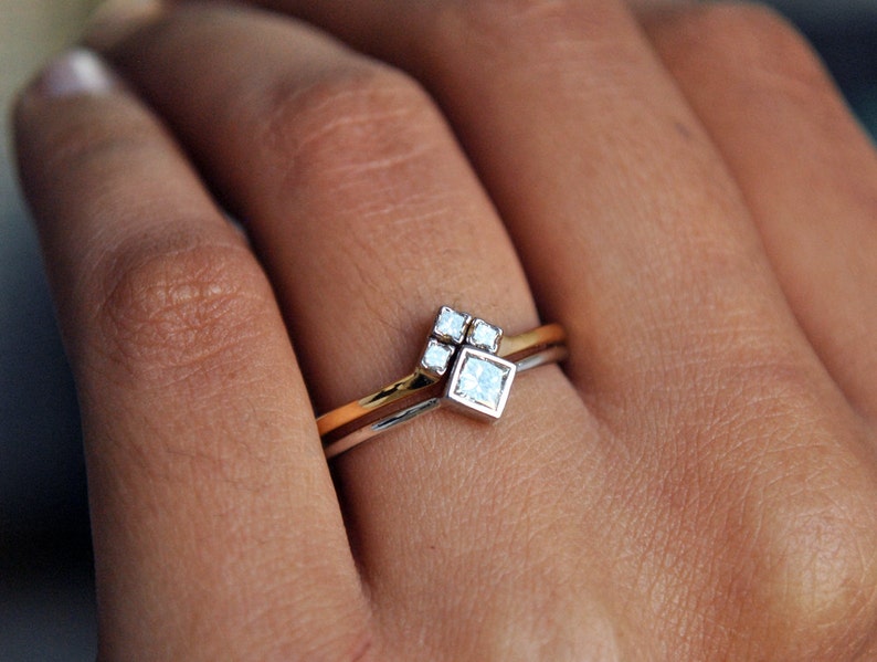 Wedding Ring Set 14k White Yellow Gold Princess Cut Diamond Bridal Engagement Ring Set Diamond Chevron V Wedding Band Diamond Set