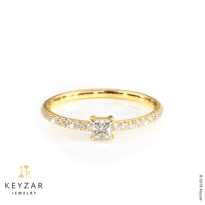 Princess Diamond Wedding Band Classic Open Pave Wedding Ring And A Stackable Ring Yellow Gold