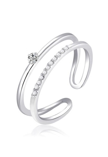Youniq Basic Korean Silver Little Meteor Cz Diamond 2 Layer Ring