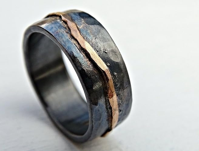Amazon Com Hammered Gold Wedding Band Black Silver Man Wedding