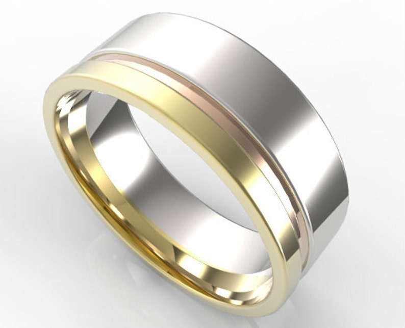 Men Wedding Band Custom Three Tone Gold Wedding Band For Men S Unique Wedding Band Wide Wedding Band 14k Wedding Ring Wedding Rings