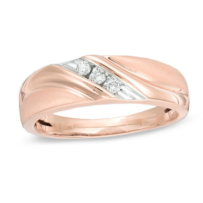 Previously Owned Men S 1 10 Ct T W Diamond Three Stone Slant Band In 10k Two Tone Gold Zales
