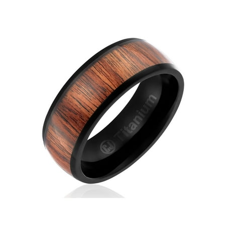 Mens Wedding Band In Titanium 8mm Ring With Dark Wood Inlay
