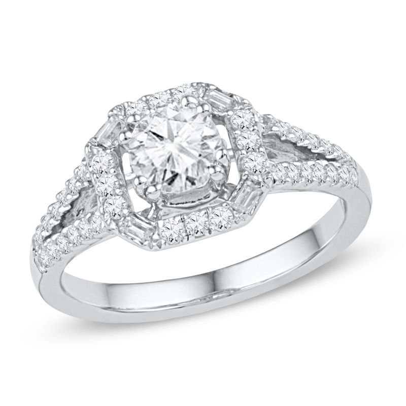 3 4 Ct T W Diamond Frame Engagement Ring In 10k White Gold Zales