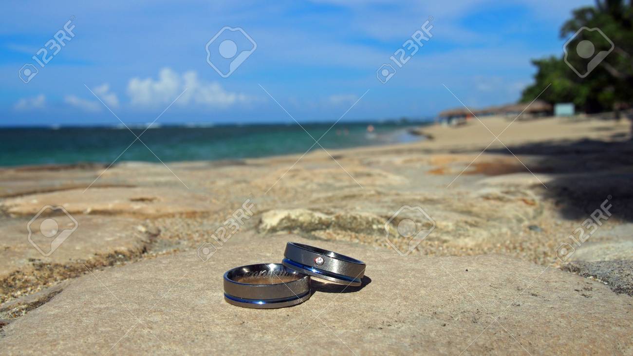 Wedding Rings On The Beach In The Honeymoon