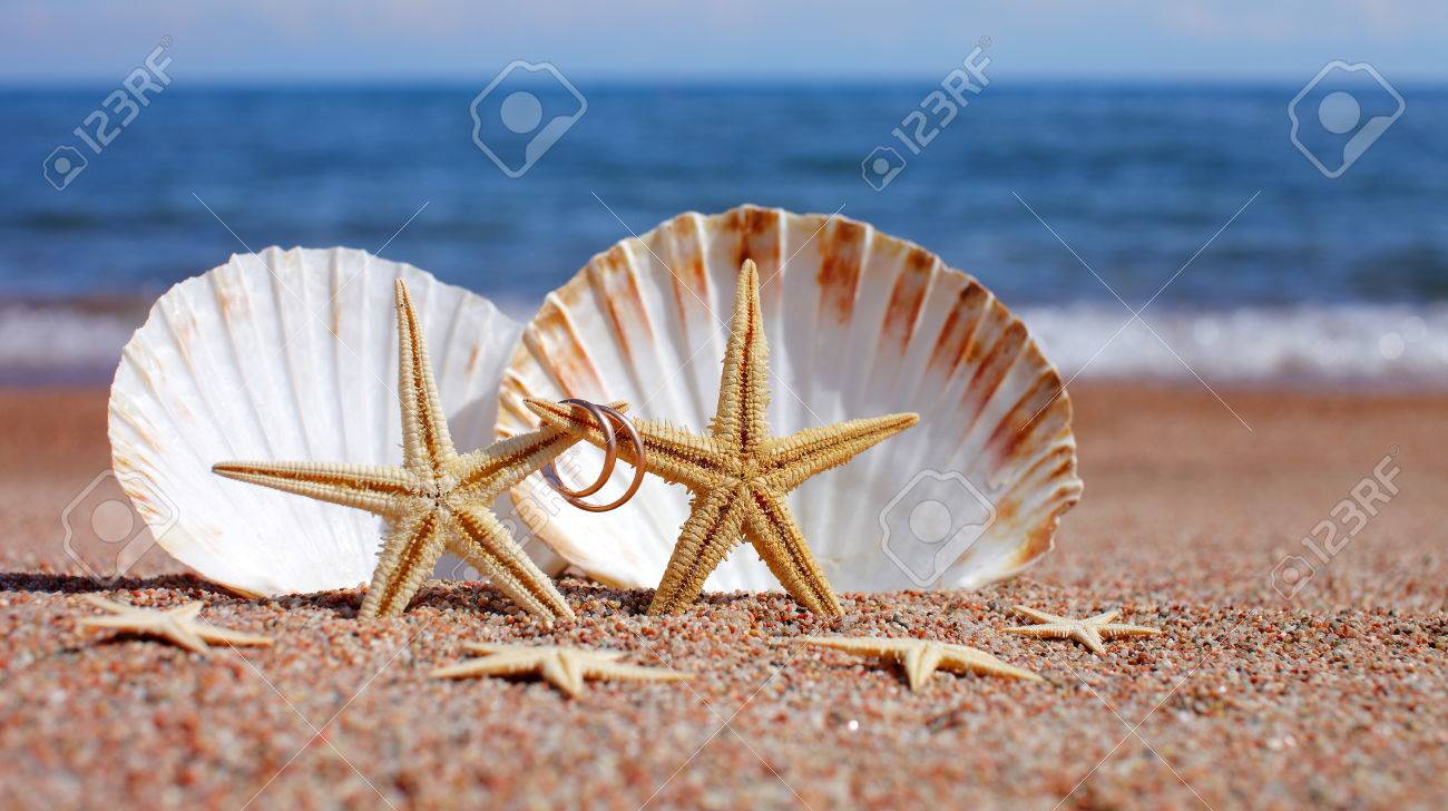 Starfish On The Beach With Wedding Rings