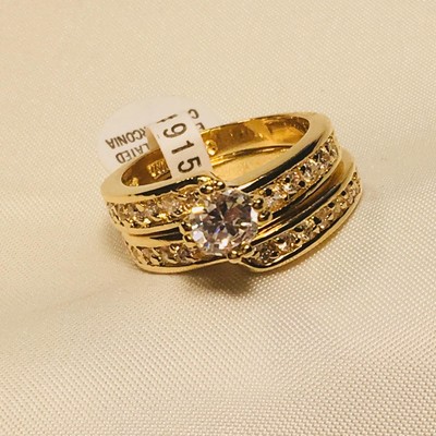 Wow Priced Cubic Zirconia Wedding Ring Set 14k Gold Plated Beautiful Sz 8 Ebay