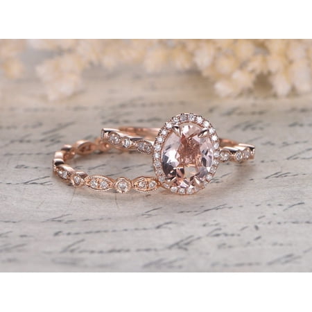 Beautiful 1 5 Carat Oval Cut Real Morganite And Diamond Bridal Wedding Ring Set With Engagement Ring And Wedding Band In 18k Gold Over Silver