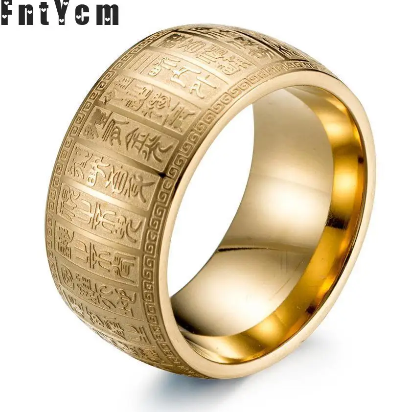 Buddhism Scriptures Supernatural Amulet Letter Men Wedding Rings Mens Signet Ring Stainless Steel Gold Silver Ring Bague Homme