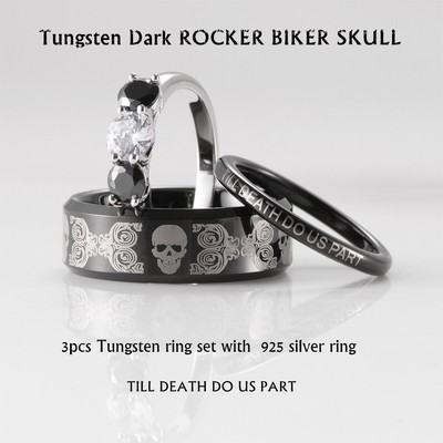 3pcs Tungsten Silver Wedding Ring Set Rocker Biker Skull Custom Engraved Ebay