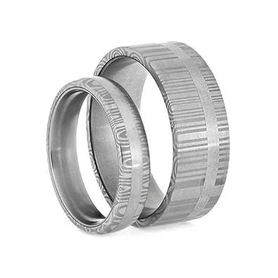 Amazon Com His And Hers Matte Grey Damascus Comfort Fit Stainless