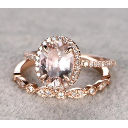 Limited Time Sale 1 50 Carat Morganite And Diamond Wedding Bridal Ring Set In 10k Rose Gold One Engagement Ring Wedding Band
