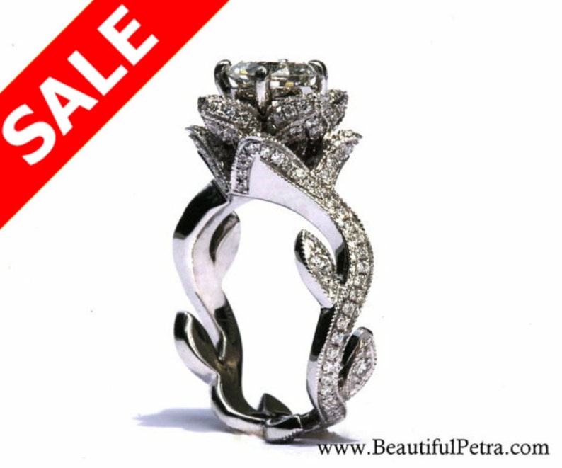 Blooming Work Of Art Milgrain Flower Rose Lotus Diamond Engagement Ring Semi Mount Setting 14k White Gold Fl07 Patented Design