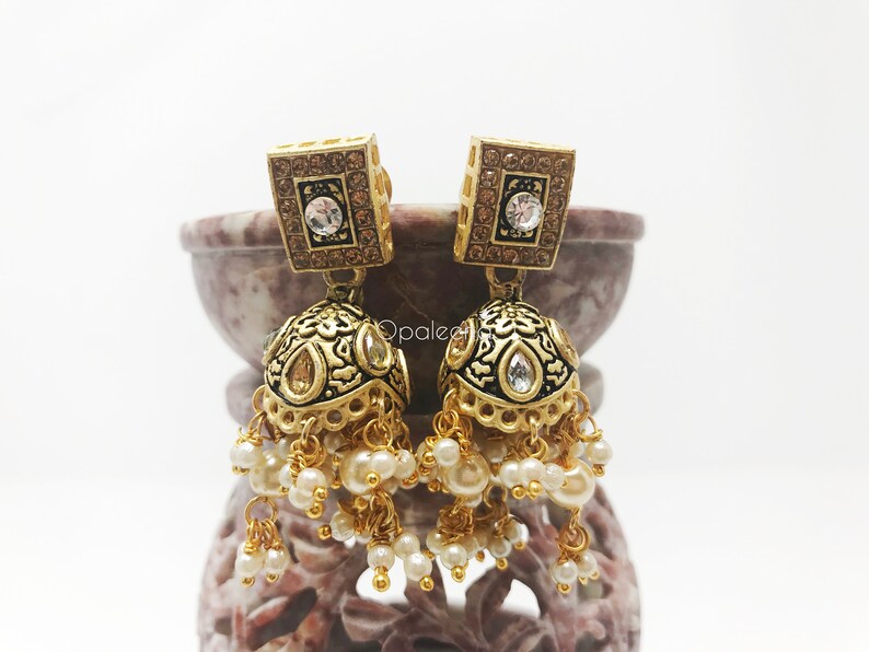 Indian Gold Earrings Wedding Earring Gift For Her Valentines Day Gift Gold Jewelry Ethnic Gold Earrings Gold Dangle Earrings Wedding Jewelry