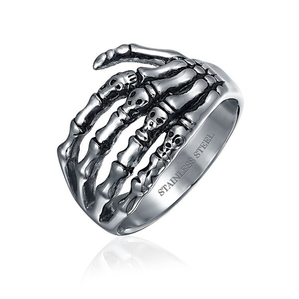 Goth Biker Punk Rocker Skelton Hand Wrap Band Ring For Men For Teen Oxidized Silver Tone Stainless Steel