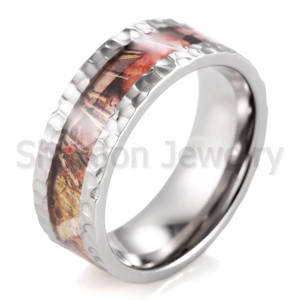 Us 15 98 Hammered Titanium Camo Wedding Ring Hunting Titanium Wedding Band Ring With Hammered Finish Ring For Men In Rings From Jewelry