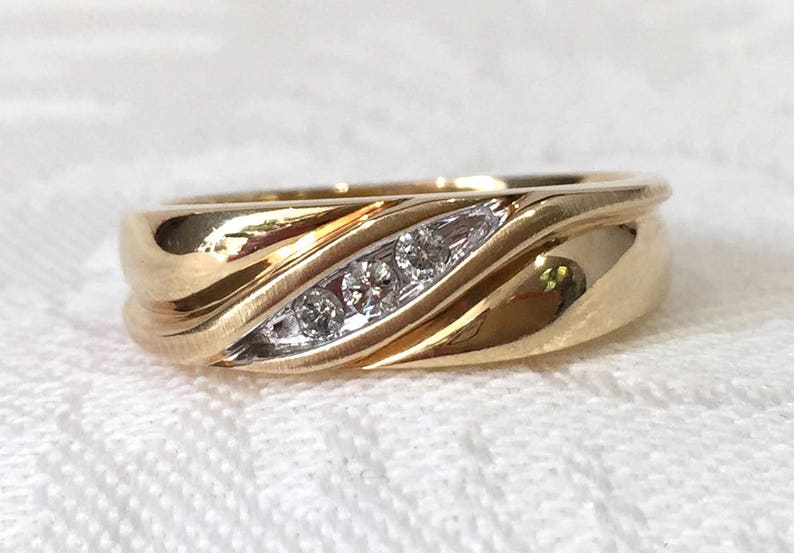 Men S Diamond Wedding Ring Yellow Gold Diamond Wedding Band Diamond Bridal Band Ring 1980 S Diamond Ring