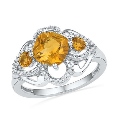 7 0mm Cushion Cut Citrine And 1 10 Ct T W Diamond Ring In Sterling Silver Zales
