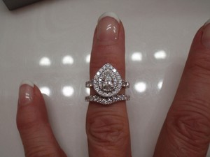 Details About Real 10k White Gold Ladies Engagement Ring Wedding Band Bridal Set Pear Diamond