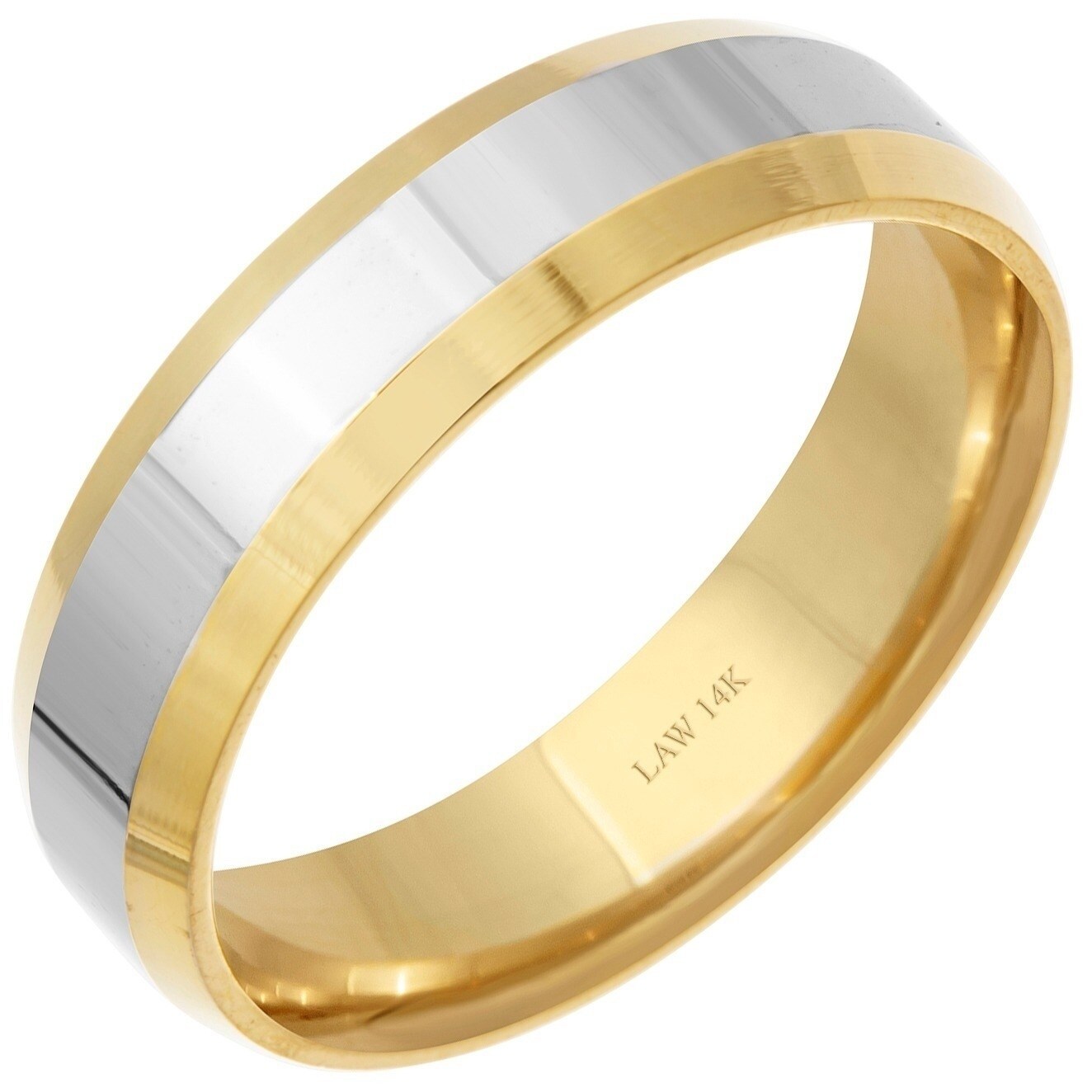 14k Two Tone Gold Plain Beveled Edge Design Comfort Fit Men S Wedding Bands White