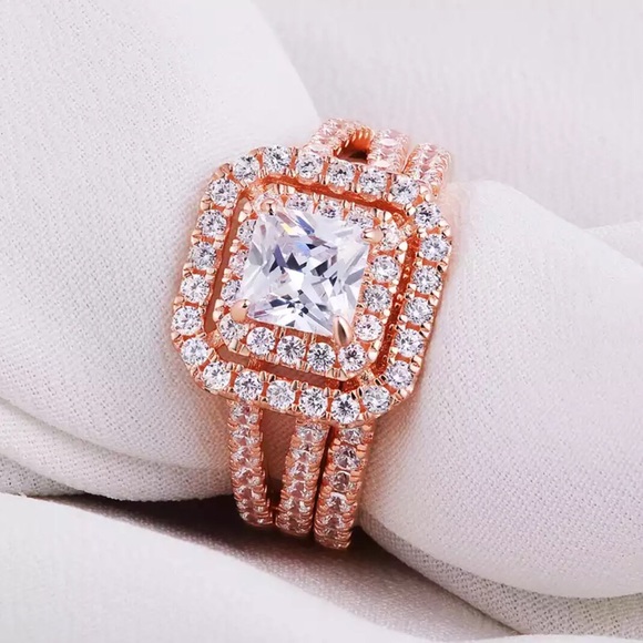 Rose Gold Engagement Wedding Ring Set
