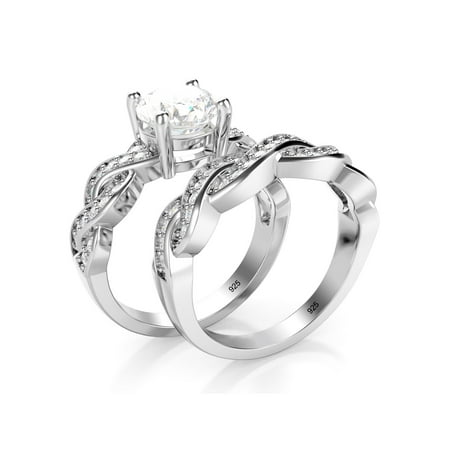 Sz 7 Sterling Silver 925 Cz Cubic Zirconia Infinity Wedding Engagement Ring Set