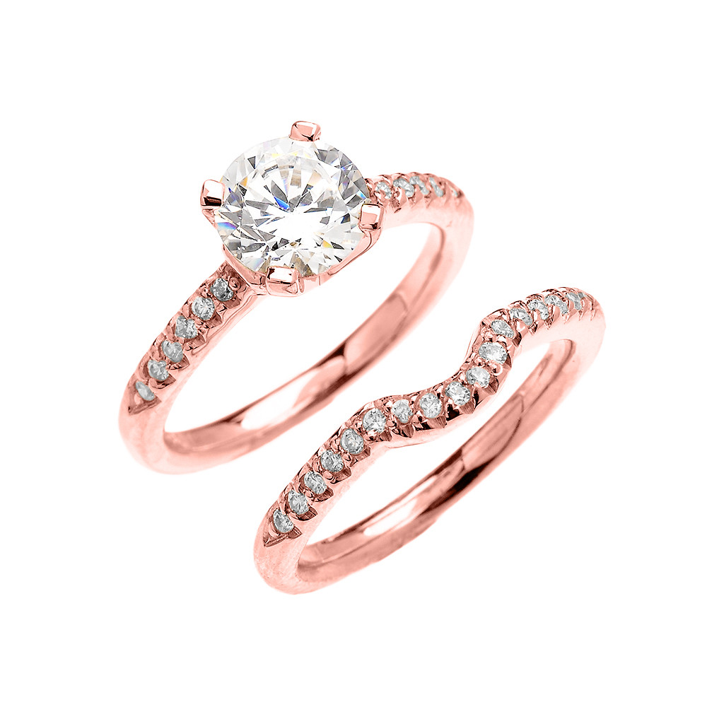 Rose Gold Dainty Round Cubic Zirconia Solitaire Wedding Ring Set