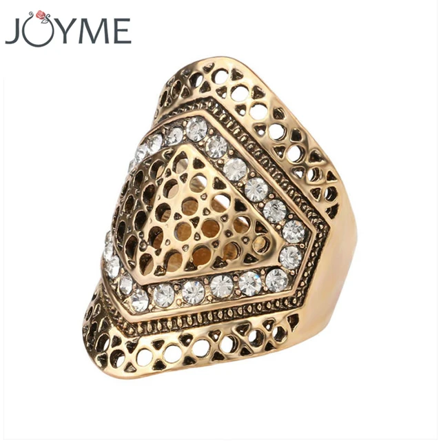Aliexpress Com Buy Party Wedding Rings For Women Mosaic Rhinestone Steampunk Antique Gold Color Geometric Wide Big Ring Bague Femme Anillos From