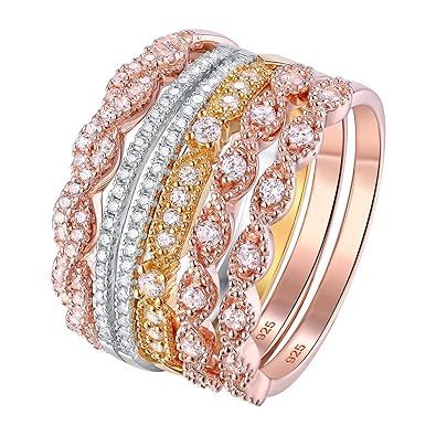 Newshe Wedding Bands For Women 5pcs Stackable Eternity Rings Sets Sterling Silver Cz Gold Size 5 10