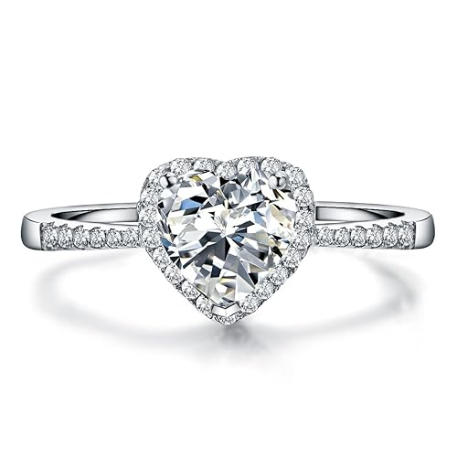 Paitse 925 Sterling Silver Heart Shape 1 Carat Anniversary Promise Wedding Band Engagement Ring