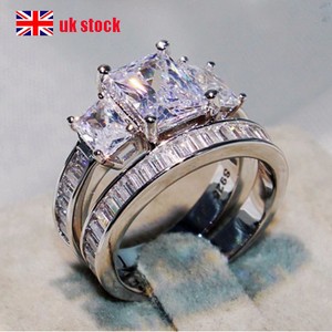 Details About Fashion Women Cubic Zirconia Silver Rings Engagement Wedding 2pcs Set Jewelry Uk