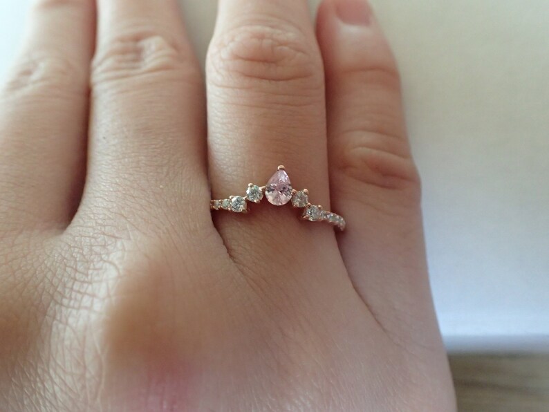 Curved Ring Enhancer Engagement Ring Enhancer Curved Chevron Wedding Band Diamond Pink Sapphire Curved Ring