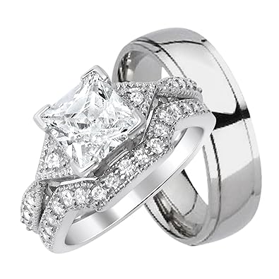 Besttohave his and hers 7mm brushed titanium engraved i love you wedding engagement ring set available sizes l z4 email your ring sizes via amazon. Information and inspiration for all wedding ring set designs so you pick the perfect one set. You want to make sure all the necessary arrangements are made beforehand.