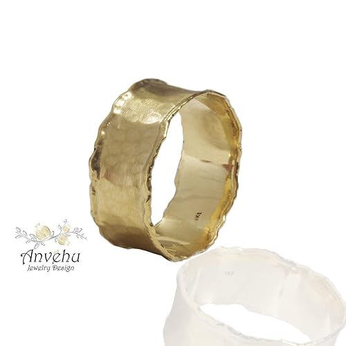 Amazon Com Hammered Wedding Band Womens Gold Wedding Ring Wide