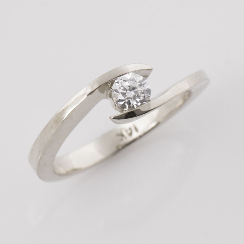10k White Gold Bypass Style Solitaire Engagement Ring Wrap With Cubic Zirconia 0 12 Cts