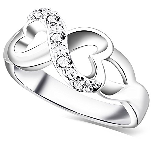 Bohg Jewelry Womens Fashion Silver Plate Cubic Zirconia Cz Heart Infinity Symbol Ring Wedding Band