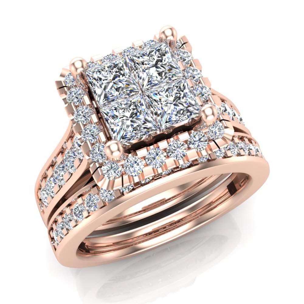 Princess Cut Quad Halo Wedding Ring Set 1 80 Carat Total Weight 14k