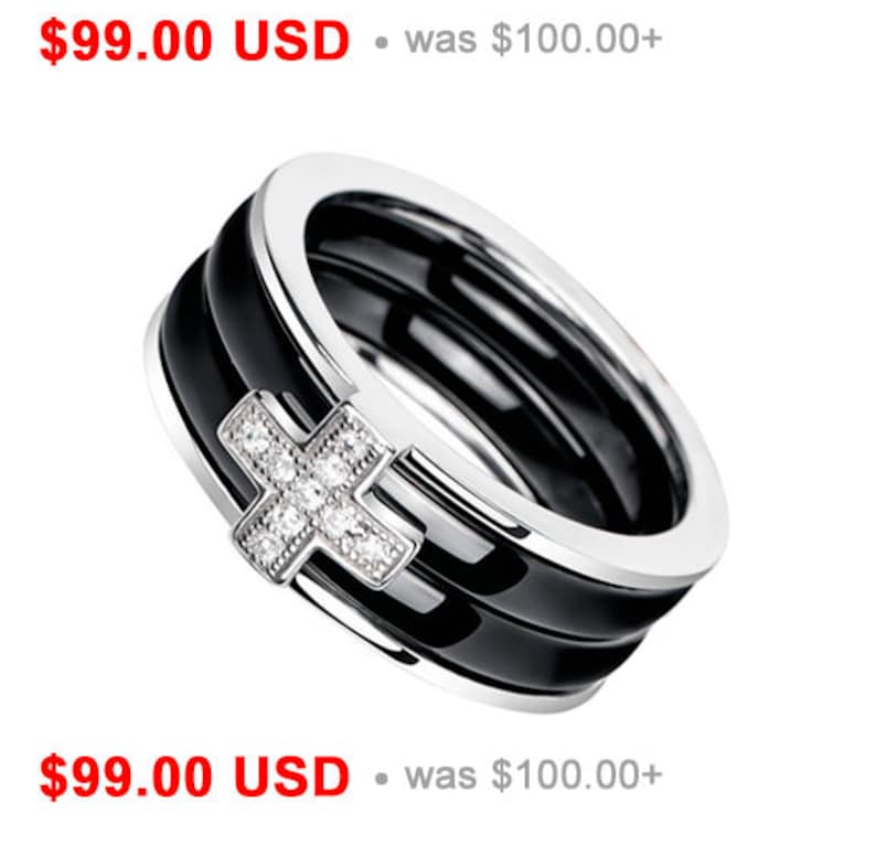 Cross Ring Black Wedding Ring Black Ceramic Ring Black Wedding Band Cz Stacking Wedding Ring Black Engagement Ring Double Ring Catholic Ring