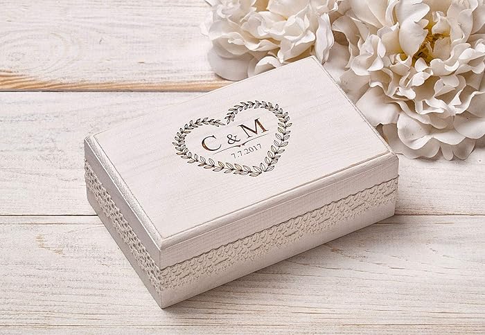 Amazon Com Personalised White Wedding Rings Box Custom Wedding