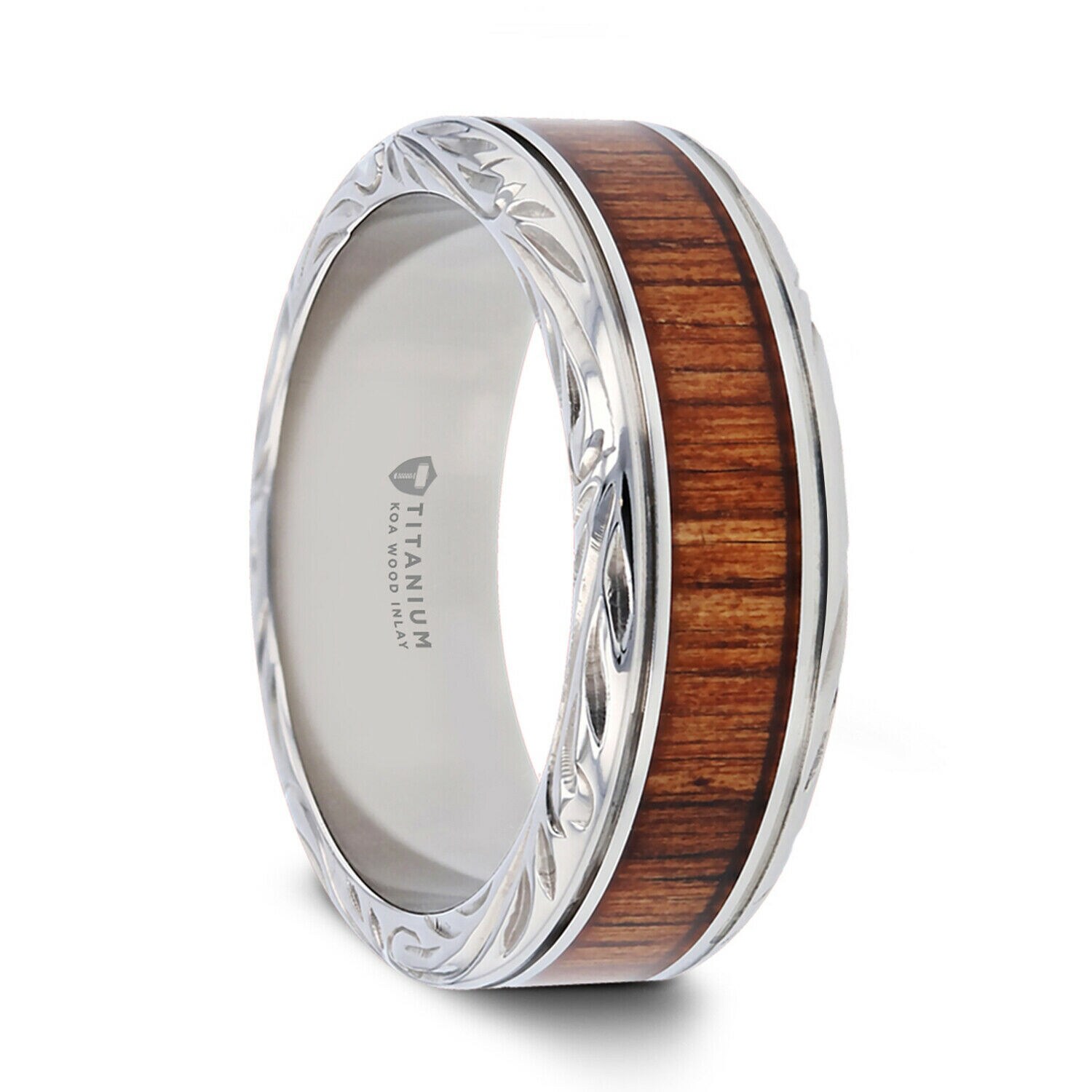 Thorsten Ohana Mens Titanium Ring Lightweight Titanium Koa Wood Inlaid Titanium Wedding Ring With Intricate Edges 10 Mm
