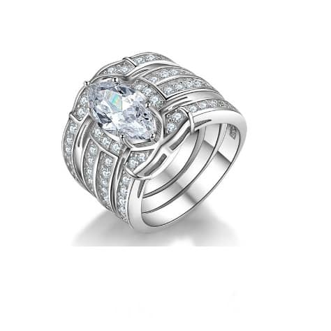 925 Sterling Silver 3 Piece Halo Bridal Ring Set With Cubic Zirconia