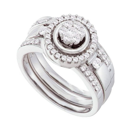 14kt White Gold Womens Diamond Cluster 3 Piece Bridal Wedding Engagement Ring Band Set 1 2 Cttw