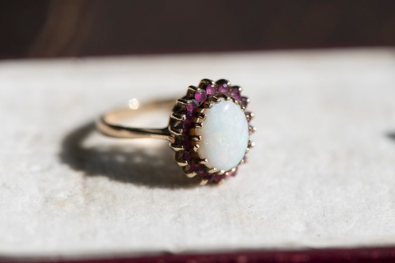 80s Vintage Opal Garnet Ring Gold Engagement Ring White Red Stone Antique White Stone Jewellery Jewelry Girlfriend Anniversary Birthday