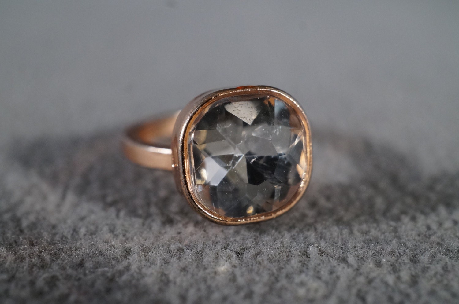 Vintage Rose Gold Tone Large Square Faceted Glass Stone Wedding Engagement Style Band Ring Size 6 5