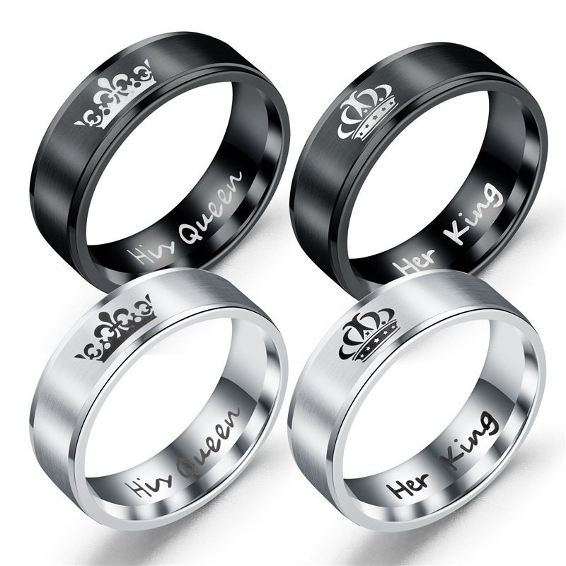 6mm 30pcs Classic Diy Luxury Black Silver Color Band Rings Couple Jewelry Her King And His Queen Titanium Steel Women Men Wedding Rings