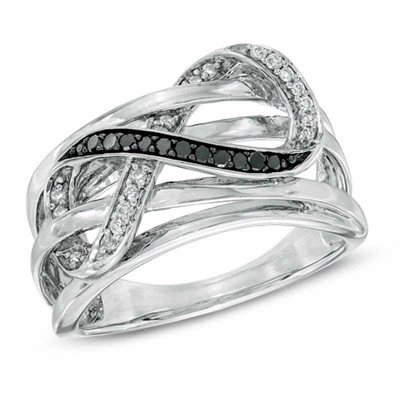 1 5 Ct T W Enhanced Black And White Diamond Layered Infinity Ring In Sterling Silver Size 7 Zales